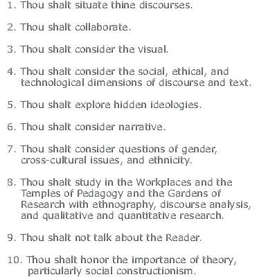 And yea, though they walked through the valleys of process theory and cognitivism, they did not linger long, and soon they came to the Mountain Of Social Constructionism. And Bazerman climbed the mountain, and he returned with the insight that texts are not just socially constructed but also socially constructive. Verily. And the people rejoiced, and were transformed.